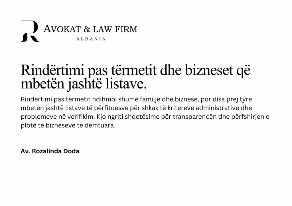 Rindërtimi pas tërmetit dhe bizneset që mbetën jashtë listave Rindërtimi pas tërmetit ndihmoi shumë familje dhe biznese, por disa prej